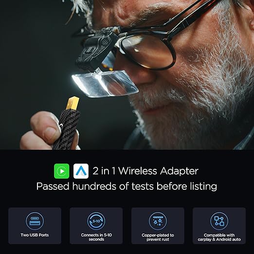 🚀 [اتصال آسان و سوئیچینگ یکپارچه] SMT-AC01 با تراشه و ماژول وایفای پیشرفته خود، یک تجربه واقعاً بیسیم را بدون دردسر کابلها ارائه میدهد. به سرعت و به راحتی تنها در سه مرحله ساده متصل شوید: وصل، جفتسازی و اجرا. به سادگی بلوتوث محصول را دوباره جفت کنید و بسته به گوشی جفت شده (اندروید یا iOS) به راحتی بین اندروید اتو بیسیم / کارپلی بیسیم جابجا میشود، تعویض دو در یک هرگز تا این حد روان نبوده است!