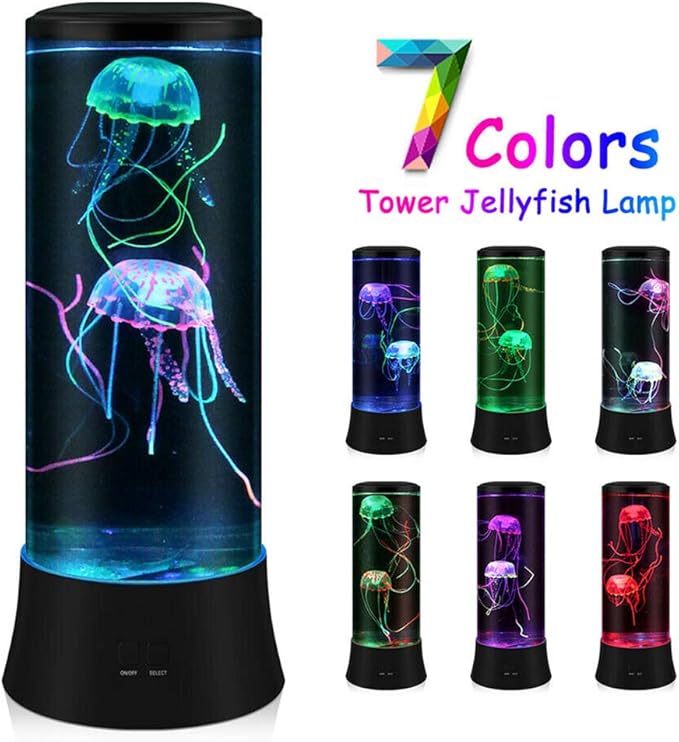 لامپ گدازهای LED فانتزی POYO مدل Jellyfish Lava – گرد، لامپ آکواریومی واقعی Jellyfish – 7 رنگ قابل تنظیم، Jellyfish، آکواریوم، نور محیطی، دکوراسیون منزل و محل کار، دکوراسیون، هدایای عالی برای کودکان