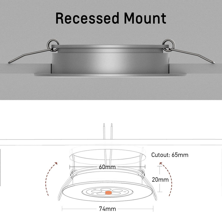 طراحی باریک: فقط به حداقل فاصله ۱۹ میلیمتر نیاز دارد، براکت نصب ضد لرزش با گیرههای فنری، چراغ همسطح با سقف قرار میگیرد، پس از نصب ظاهری تمیز دارد.