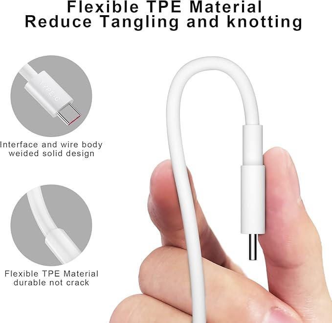 ✅【شارژر ایمنتر و طول عمر بیشتر】 کابل شارژ USB C که در مقاومت تقویتکننده 56 کیلواهم تعبیه شده است، پایداری ولتاژ و جریان شارژ را در حین شارژ سریع تضمین میکند. کانکتور USB-C با روکش TPE برای اتصال راحت و مقاومت در برابر سایش، بیش از 5000 تست خمش و بیش از 5000 تست اتصال و قطع اتصال را پشت سر گذاشته است، برای استفاده بادوام است.