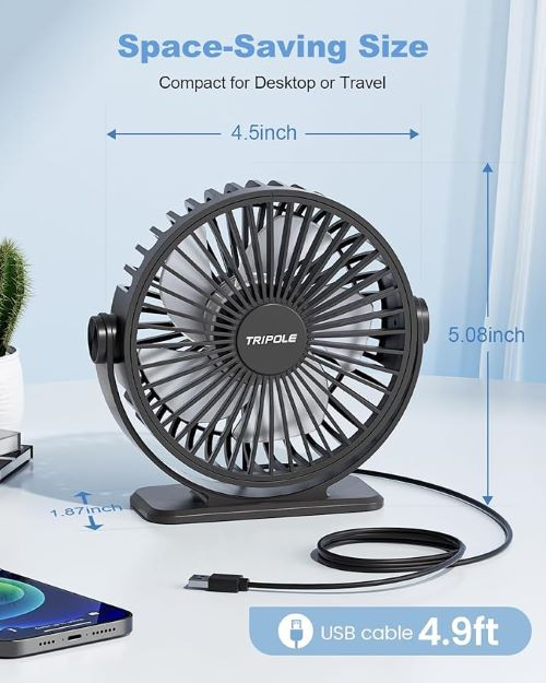 پنکه رومیزی TriPole با پورت USB-A 5 ولت عرضه میشود، میتوانید آن را به شارژر USB، کامپیوتر، پاوربانک و غیره وصل کنید. نیازی به نگرانی در مورد اختلاف ولتاژ هنگام سفر به خارج از کشور نیست.