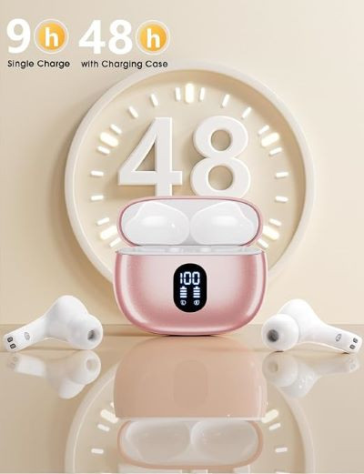 شارژ سریع – قاب شارژ برای ایربادهای بیسیم: هدفونهای بلوتوث بیسیم به پورت Type-C برای شارژ سریعتر مجهز شدهاند. میتوانید از کابل USB Type-C موجود در ایربادهای بلوتوث برای شارژ قاب با هر آداپتور شارژ سازگار (شامل نمیشود) استفاده کنید. نمایشگر دیجیتال دوگانه LED، میزان شارژ باقیمانده باتری قاب و وضعیت شارژ ایربادها را نشان میدهد. *اگر اوتیت مدیا یا التهاب گوش یا عفونت گوش دارید، لطفاً ابتدا با پزشک مشورت کنید و قبل از استفاده از این محصول، توصیههای پزشک را دنبال کنید.