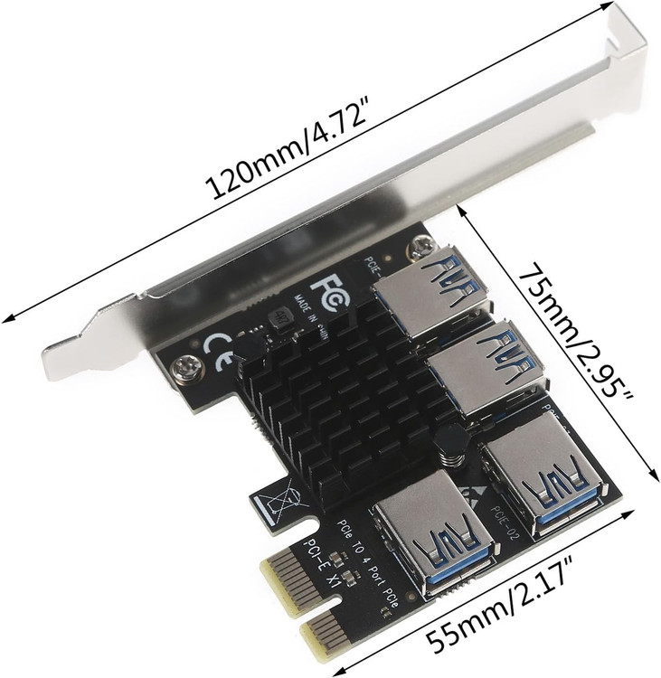 کارت تبدیل PCI-E 1 به 4 PCI-Express 16X، کارت تبدیل USB 3.0 برای ماینینگ، مناسب برای لینوکس، کارت M PCI-e، آداپتور PCI-E 1x به 16x USB 3.0