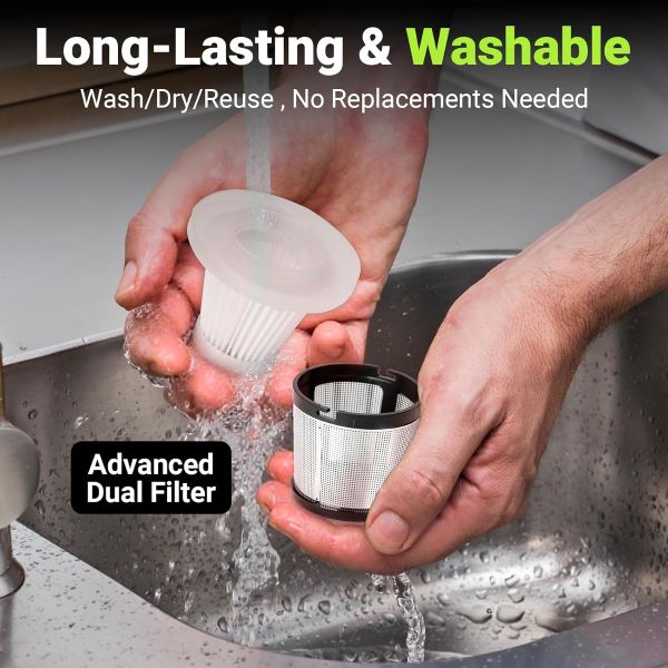نگهداری آسان با فیلتر قابل شستشو و طراحی نازل چندگانه: دارای دو فیلتر HEPA قابل استفاده مجدد، یک فیلتر فلزی و چندین نازل جداشدنی، اثر فیلتر دوگانه برای کارهای مختلف. همه لوازم جانبی به راحتی برای نصب و نگهداری بدون دردسر متصل میشوند.