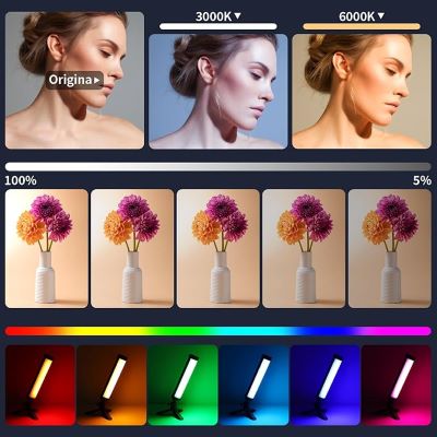 نور دو رنگ RGB +: با استفاده از مهرههای لامپ با کیفیت بالا با CRI 95+ که نزدیک به طیف نور طبیعی است، رنگ اشیا هنگام گرفتن عکس بهتر بیان میشود. روشنایی بدون تغییر (فشار طولانی دکمه)، روشنایی 5٪ -100٪ قابل تنظیم است. دمای رنگ را میتوان روی 3000 کلوین (نور گرم) یا 6000 کلوین (نور سرد) تنظیم کرد. از حالت CCT، روشنایی، تنظیم رنگ و 4 جلوه نوری صحنه پشتیبانی میکند. بدون سوسو زدن