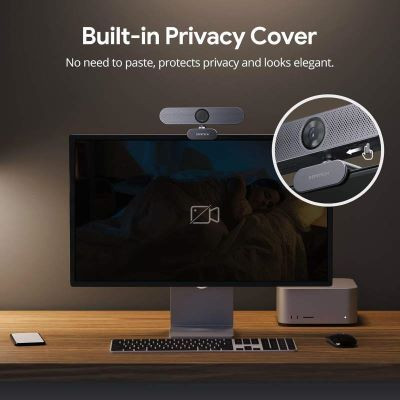 ★تنظیم نور با کنترل از راه دور: با عملکرد تنظیم روشنایی 4 سطحی، میتوانید حتی در نور کم، تصویر مورد نظر خود را به راحتی در تماسهای ویدیویی با کنترل از راه دور موجود در فاصله 3 متری کنترل کنید. مانند تنظیم روشنایی، تنظیم اشباع، بیصدا کردن میکروفون، فوکوس خودکار/تغییر فوکوس ثابت.