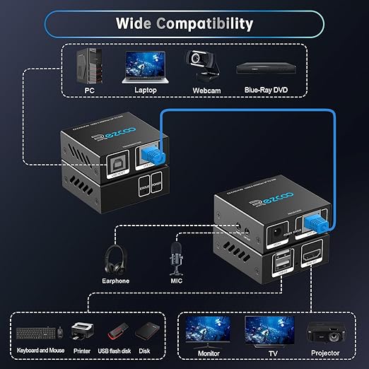 【سناریوهای کاربردی】: میتوانید کامپیوتر، PS، Xbox را با صفحه کلید، ماوس و گیمپد از راه دور کنترل کنید. عملکرد نمایشگر تعاملی، انتقال داده و پخش USB تا 100 متر. با همه سیستم عاملها: ویندوز، مک.