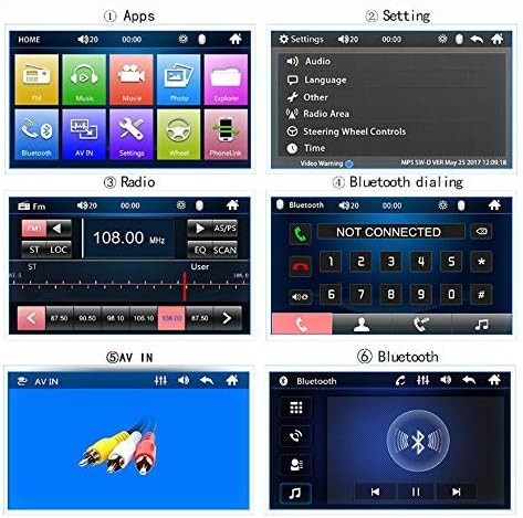 عملکرد چند منظوره: MP5، USB/TF، FM، بلوتوث (تماس تلفنی و پخش موسیقی)، ورودی دوربین عقب برای دنده عقب خودرو، ورودی Aux، اتصال آینه iOS/Android. این دستگاه با اندروید ۴.۷ تا اندروید ۹ سازگار است؛ iOS تا iOS ۱۱ (شامل) در حالت Mirror Mode.