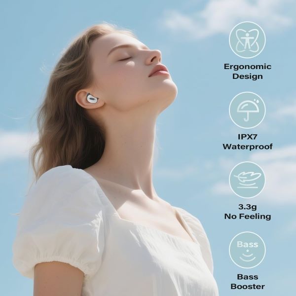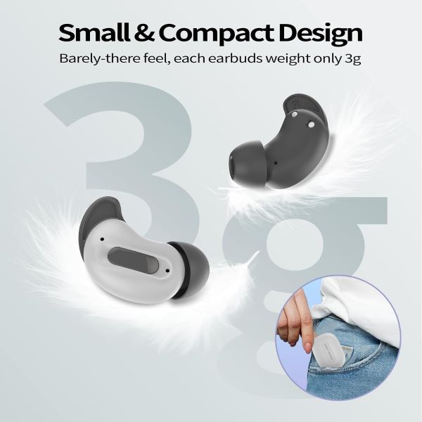 راحتی ویژه برای افرادی که به پهلو میخوابند: هدفونهای خواب D20 به طور ویژه برای افراد حساس به خواب و افرادی که به پهلو میخوابند طراحی شدهاند. با تنها ۳ گرم وزن در هر هدفون بلوتوث، شکل ارگونومیک و اتصالات سیلیکونی سازگار با پوست، آنها کاملاً با انحنای طبیعی گوش - بدون نقاط فشار - سازگار میشوند. حتی در طول خواب ناآرام یا حالت پهلو، در گوش راحت و ایمن میمانند - مناسب برای تمام شب.