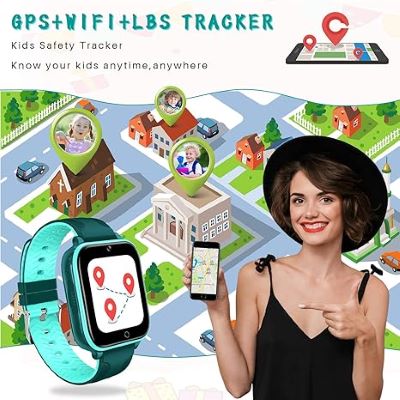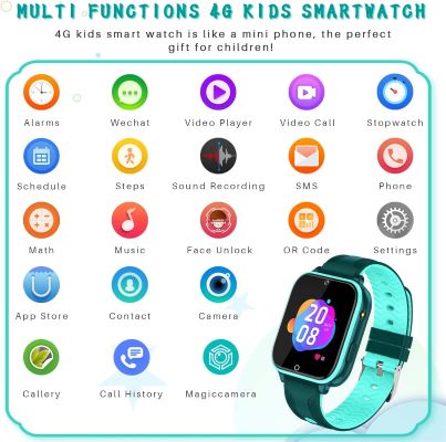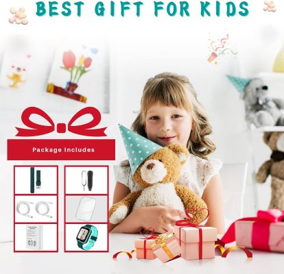 ساعت هوشمند 4G برای کودکان، ساعت کوچک لمسی 1.69 اینچی کودک با ردیاب GPS، تماس SOS، ساعت مچی قفل گشایی با تشخیص چهره برای پسران و دختران، هدایای تولد و کریسمس برای سنین 3 تا 12 سال (آبی فیروزهای)