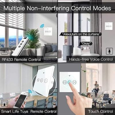 ۳.★تطبیق چند سناریویی: انواع مختلف پرده مانند کرکره پنجره/پرده کرکرهای/پرده ونیزی و غیره را با هم ست کنید. کلید پرده هوشمند را در مکانهای زیادی مانند دفتر/مطالعه/اتاق خواب/اتاق نشیمن و غیره نصب کنید. حتی سایبان حیاط خود را به دلخواه باز/بسته کنید. زندگی و کار خود را هوشمندتر و راحتتر کنید.