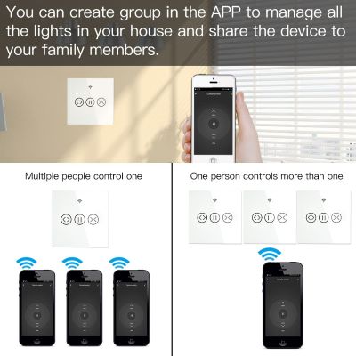 5.★کنترل گروهی و کنترل با هم: میتوانید چندین کلید پرده را به صورت گروهی تنظیم کنید و آنها را در برنامه smart life کنترل کنید. و همچنین با خانواده خود به اشتراک بگذارید، آنها میتوانند همزمان آن را کنترل کنند!