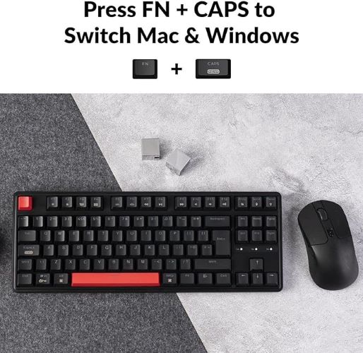 جابجایی آسان بین macOS و Windows: با فشردن کلیدهای ترکیبی FN + CAPS، فوراً سیستم عامل کیبورد را به Mac/Win تغییر دهید. و از کلیدهای عمومی سازگار با هر دو سیستم پشتیبانی میکند. کلیدهای ABS دو رنگ براق: این کلیدها که از طریق فرآیند ABS دو رنگ ساخته شدهاند، بادوام و مقاوم در برابر سایش هستند. در همین حال، حروف براق که توسط LED رو به شمال روشن میشوند، ظاهری جذاب به نوک انگشتان شما میبخشند. همچنین میتوانید بیش از ۱۴ نوع نور پس زمینه قرمز را انتخاب کنید.