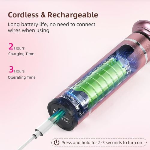 【قابل شارژ USB و ماندگاری طولانی】با شارژ سریع ۲ ساعته (از طریق کابل USB موجود) و تا ۱۲۰ دقیقه استفاده مداوم، از راحتی بیسیم لذت ببرید. سوهانهای برقی پا قابل شارژ USB برای مراقبت از پا در خانه، سفر یا در حال حرکت عالی هستند. 【طراحی آلیاژ آلومینیوم ممتاز】دستگاه سنگزنی برقی پینه پا از آلیاژ ساخته شده و یاتاقانهای داخل آن دقت و تمرکز بالایی دارند که در حین استفاده، پایداری و راحتی در دست گرفتن را تضمین میکنند. فناوری پیشرفته موتور، ضمن حفظ قدرت، سر و صدا را به حداقل میرساند.